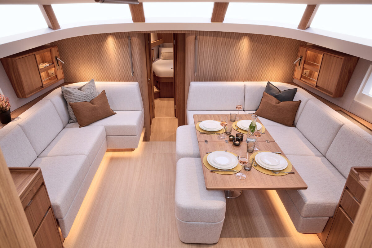 And, adding to the super aft suite, midships bunked cabin and forward guest suite, there is now an optional fourth sleeping cabin. This design innovation increases fixed berths from six to eight, providing additional, good practical sea berths close by the companionway for night or short-handed passaging. An impressive and thoroughly refreshing arrangement.